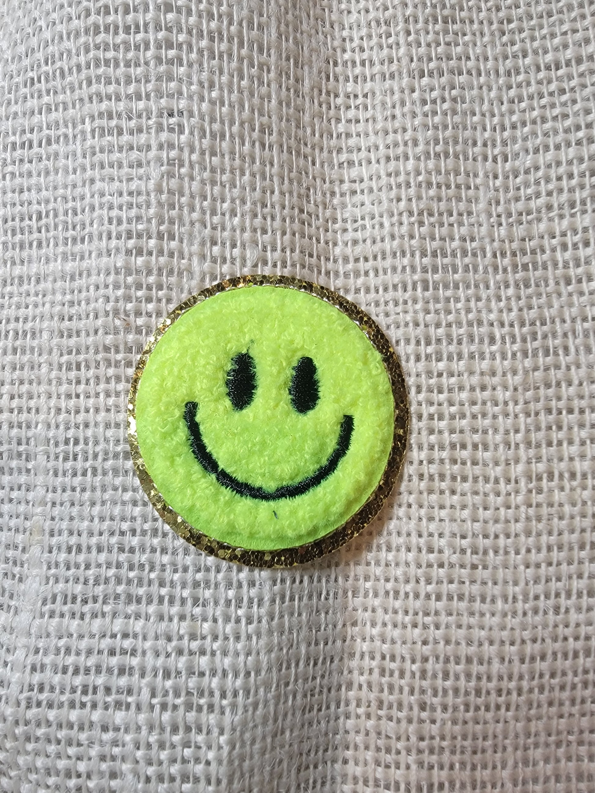 Smiley face patches-easy to apply by using a hot iron. Measurements 2.5in x 2.5in
